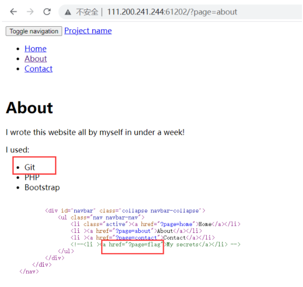 Here we find a assert() function , I think it's probably a Code Execution Vulnerability , and $page Direct splicing without any control , We want to use assert() Function execution cat ./templates/flag.php get flag, Then it must destroy the original assert Structural ability , So that our goal can be achieved
