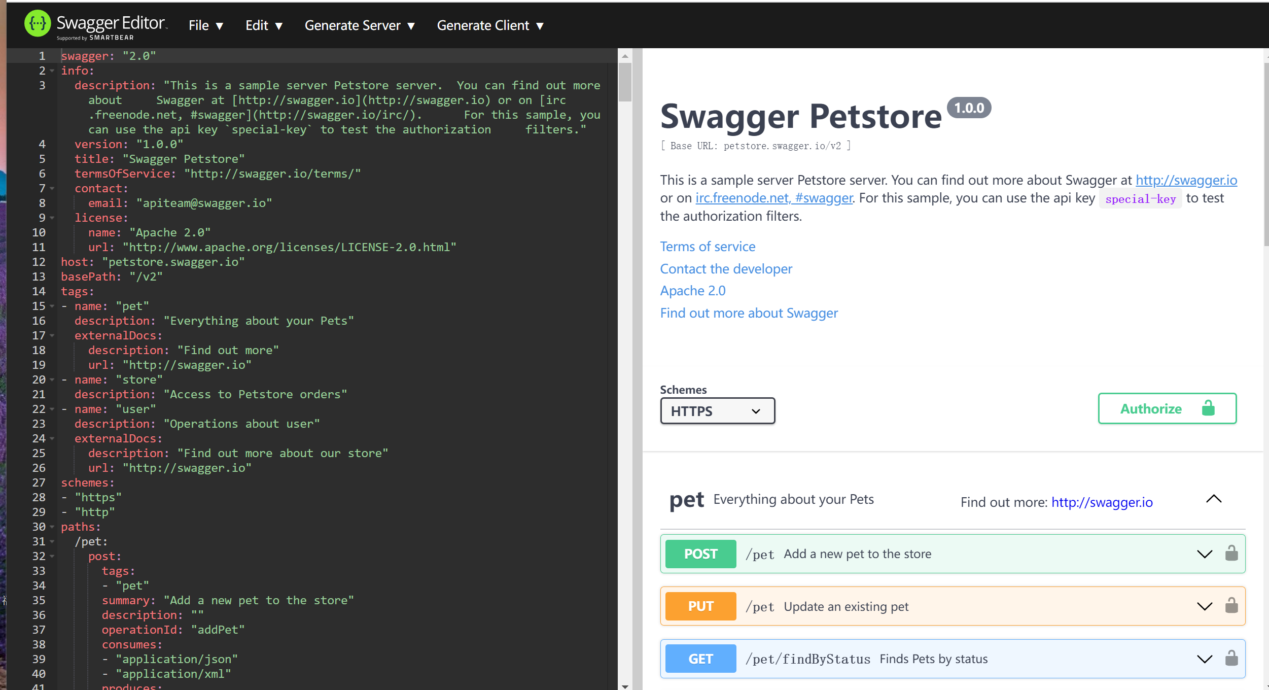 怎么写? 在swagger editor里编写符合swagger 语法的接口文档,来生成接口文档,编写完的接口文档可以在swagger editor的右侧实时预览:
