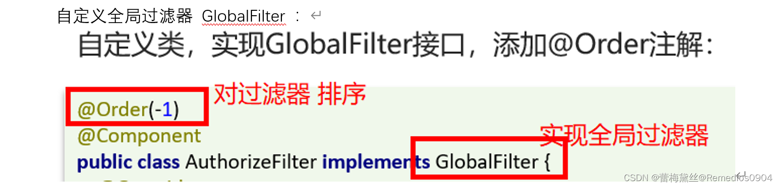 GlobalFilter通过实现Ordered接口,或者添加@Order注解来指定order值,由我们自己指定