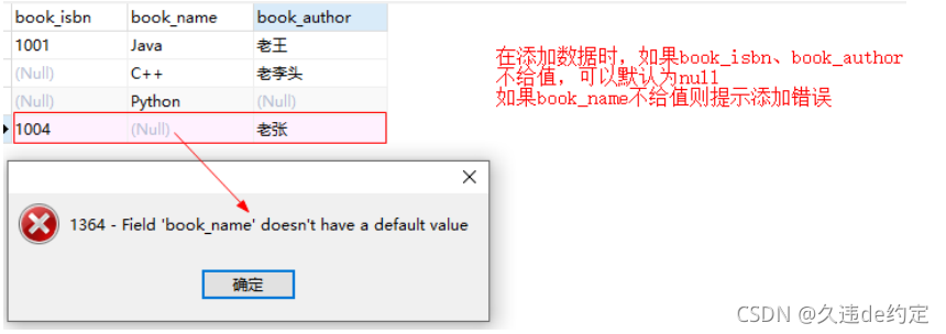 创建表:设置图书表的 book_name not nul