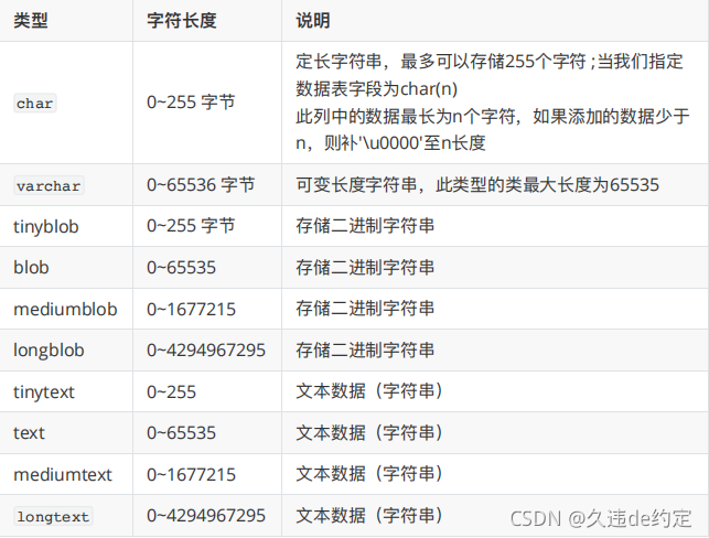数据类型,指的是数据表中的列中文支持存放的数据的类型