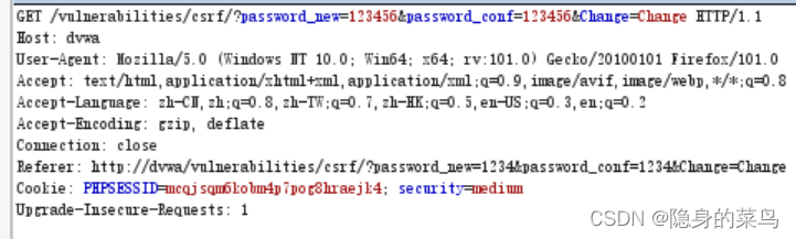 完成csrf攻击的条件:Victims in the login,Keep the session state,Lure victims to click on a malicious structure page
