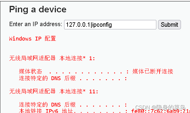 命令注入,是指通过提交恶意构造的参数破坏命令语句结构,从而达到执行恶意命令的目的.
