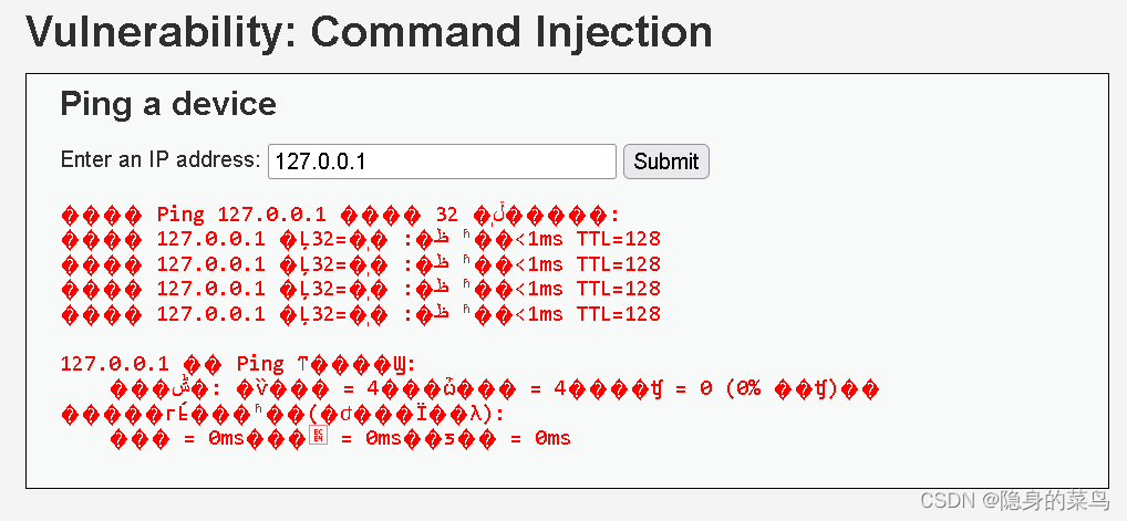 查看代码,impossible级别的代码加入了Anti-CSRF token,同时对参数ip进行了严格限制,只有像“数字.数字.数字.数字”的输入才会被接收执行,因此不存在命令注入漏洞.