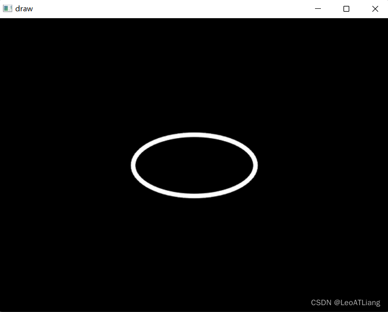 cv2.ellipse(img, (320, 240), (100, 50), 0, 0, 360, (255, 255, 255), 5, 16)