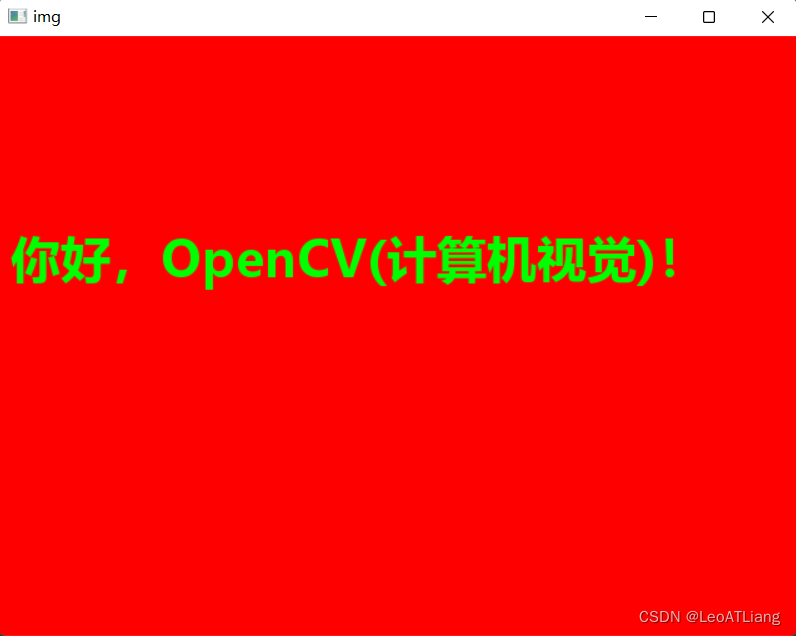 cv2.putText(img, '你好啊,计算机视觉', (25, 200), cv2.FONT_HERSHEY_COMPLEX, 2.5, (0, 0, 255))