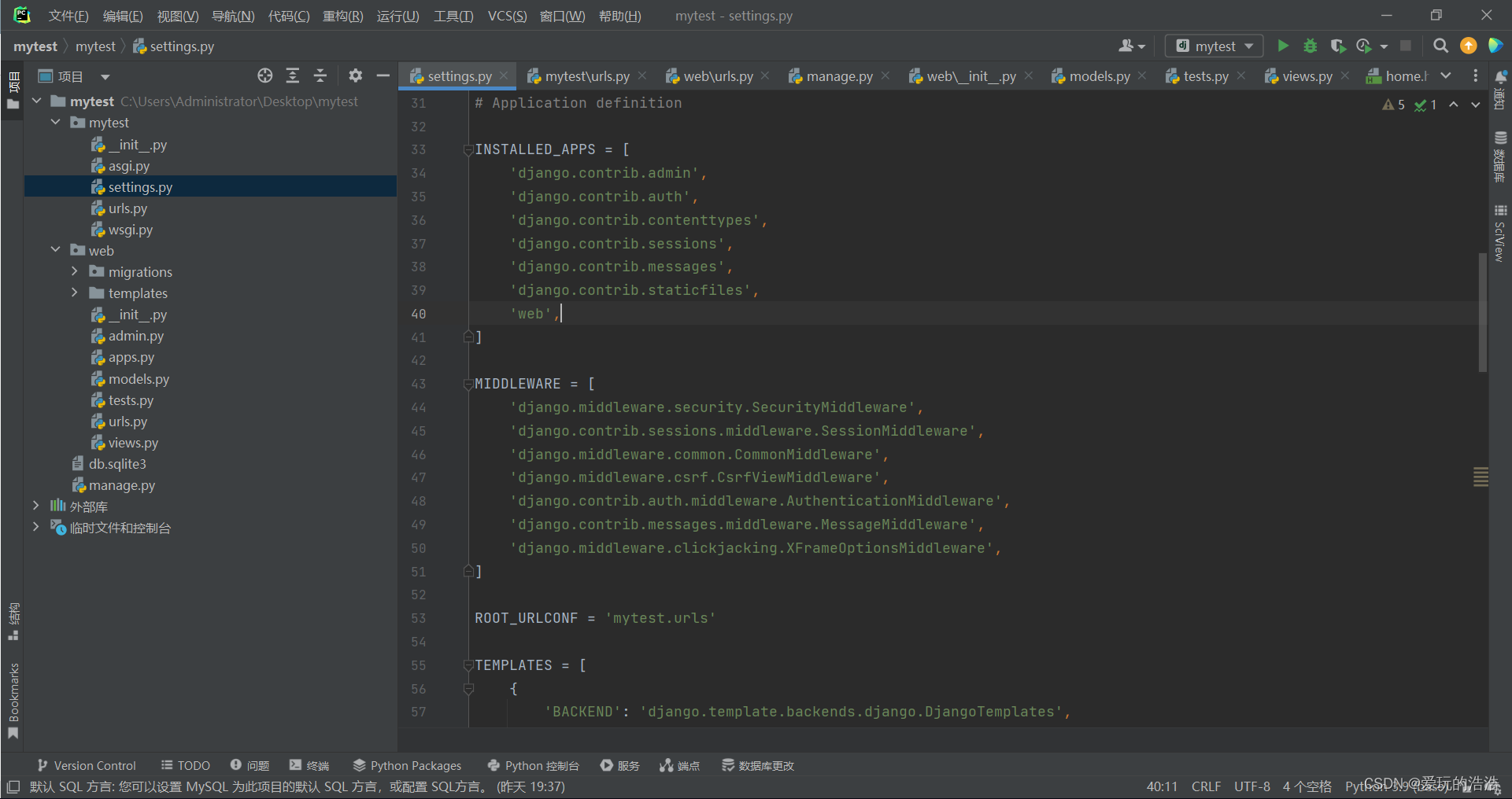 - wsgi.py 项目与WSGI兼容的Web服务器入口