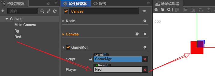 案例:按上下左右键,控制红色块的运动。新建PlayerCtrl.ts,挂载到Red节点上。代码如下: