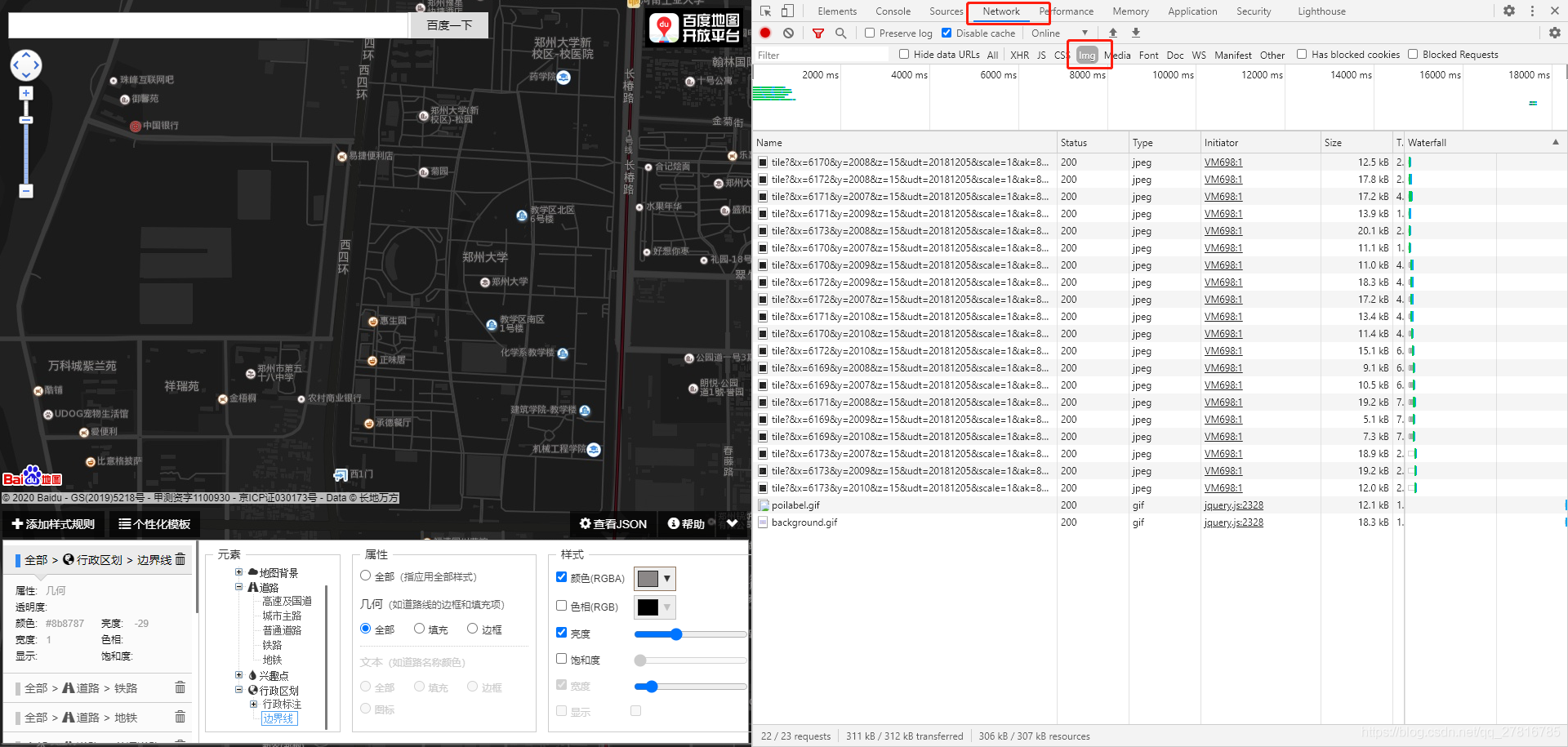 2. After style adjustment ,F12 Open browser developer tools ( Pictured ), Request link to view map tiles ;
