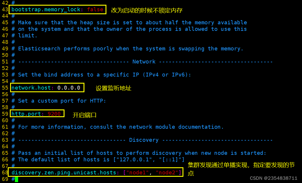--68--取消注释,集群发现通过单播实现,指定要发现的节点 node1、node2