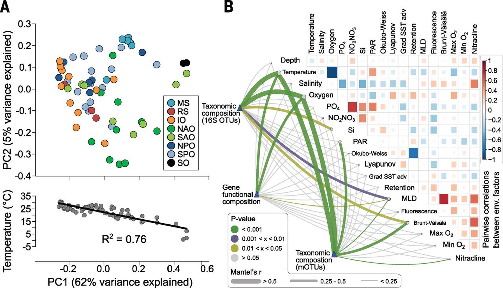 Sunagawa, S., Coelho, L. P., Chaffron, S., Kultima, J.R., Labadie, K., Salazar, G., … & Bork, P. (2015). Structure and function of theglobal ocean microbiome. Science, 348(6237), 1261359-1261359. Houyun Huang(2021). linkET: Everything is Linkable. R package version 0.0.3.
