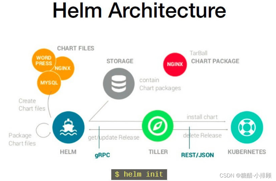 注:需要注意的是:Helm 中提到的 Release 和我们通常概念中的版本有所不同,这里的 Release 可以理解为 Helm 使用 Chart 包部署的一个应用实例。