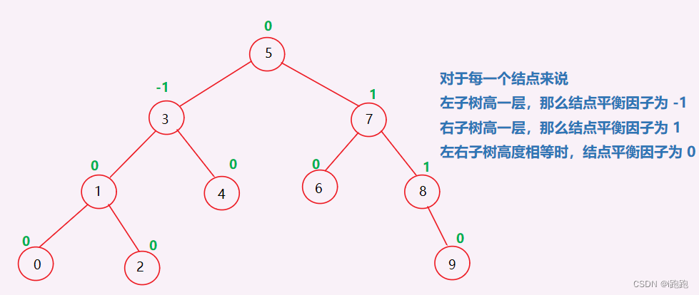 左右子树高度之差(简称平衡因子)的绝对值不超过1