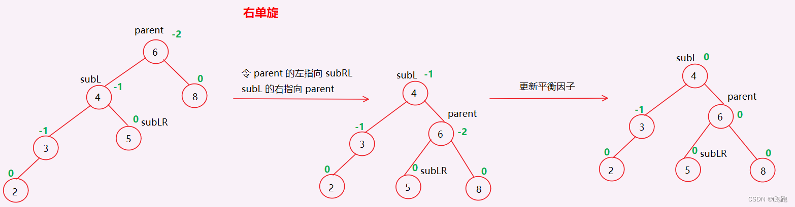 subL->_bf = parent->_bf = 0; //最后更新原父亲和其孩子的平衡因子