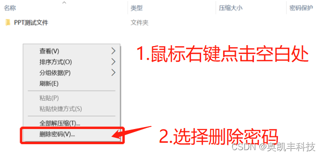 打开之后,在文件夹空白处点击右键,选择【删除密码】