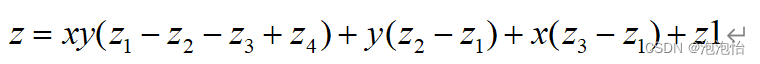 zi = ( yi_1 .* xi_1 * ( z1 - z2 - z3 + z4 ) ) / ( x2_1 .* y2_1 ) ...