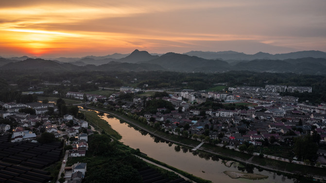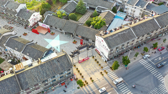 鳞次栉比的房屋沿着马路铺在眼前!暖光的光线洒落在屋顶让这座有故事的镇子看起来更加有温度,这里是独山镇红军街!AAAA级独山革命旧址群景区,主要由苏维埃革命旧址、独山老街、六霍起义纪念馆、苏维埃城步行街、六霍起义纪念塔组成。