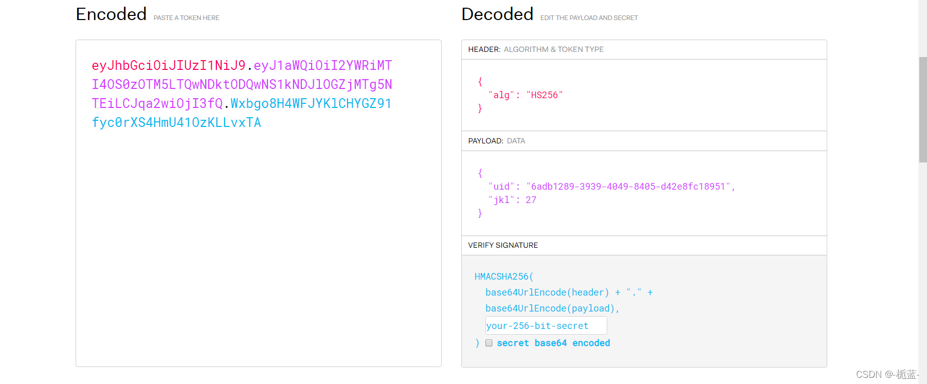 payload = { uid: SecureRandom.uuid , jkl: 20}
