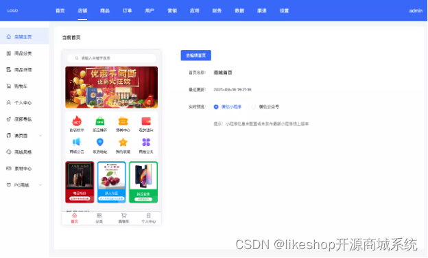 likeshop是国内开源团队开发的一款广受好评通用商城系统,100%开源,极易二次开发,微信小程序,APP,H5,PC商城多端适配。采用国内流行的技术栈架构: