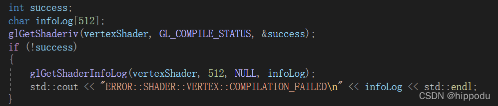 glGetShaderiv用于检测是否成功,glGetShaderInforLog获取错误消息,