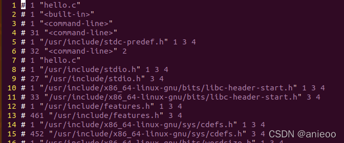 C/C++ In the source file , With “#” The first command is called a preprocessing command , If it contains a command “#include”、 Macro definition command “#define”、 Conditional compilation command “#if”、“#ifdef” etc. . Preprocessing is about to include (include) Insert the file into the original file 、 Expand the macro definition 、 Select the code to use according to the conditional compilation command , Finally, output these things to a “.i” Waiting for further processing in the file .