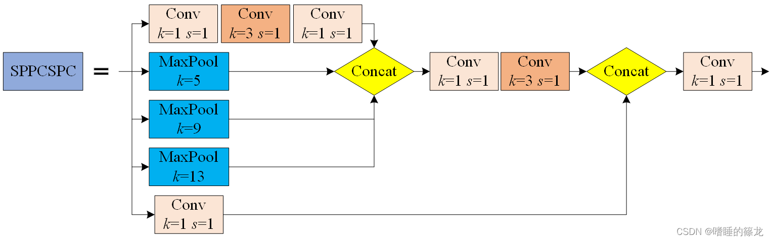 类似于yolov5中的SPPF,不同的是,使用了5×5、9×9、13×13最大池化.