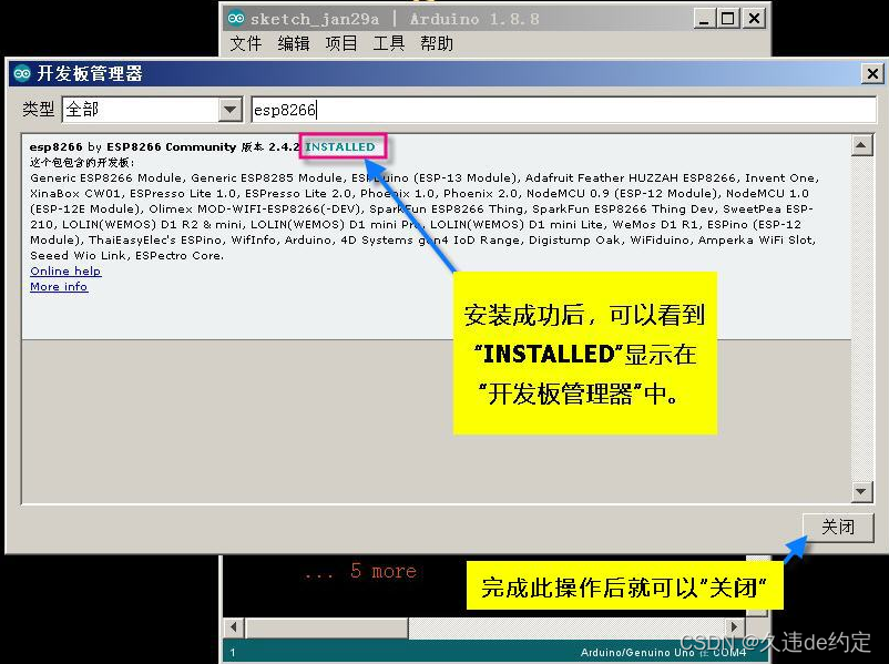 成功安装“esp8266开发板”插件文件