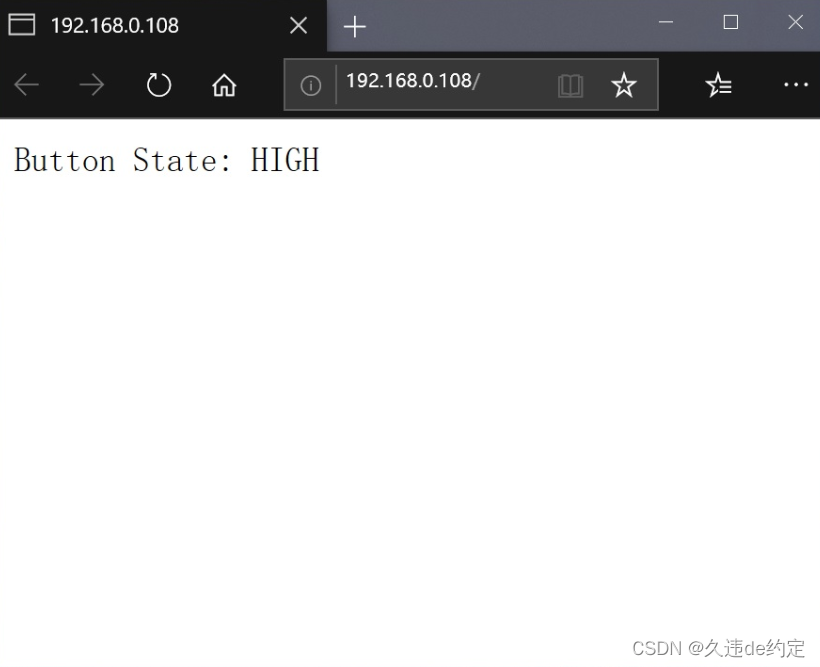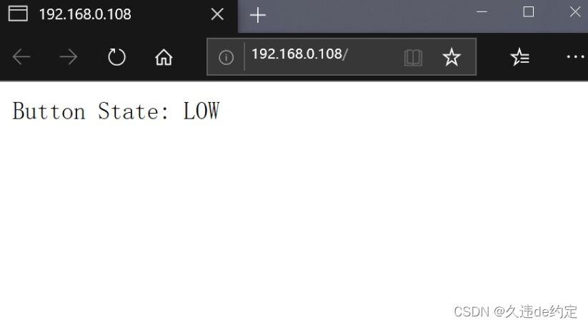 esp8266_server.send(200, "text/plain", displayPinState);这条语句将会把displayPinState所存储的信息发送给浏览器。于是我们在没有按下按键时,将会得到以下页面信息。