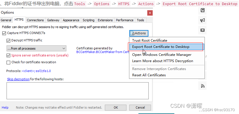 我生成的证书名是FiddlerRoot.cer(证书名称后面会用到)