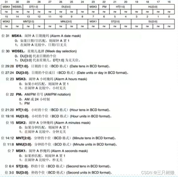 6、RTC闹钟A/B寄存器(RTC_ALRMAR/RTC_ALRMBR)