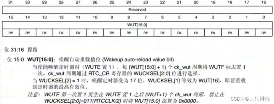 5、RTC唤醒定时器寄存器(RTC_WUTR)