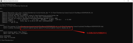 Again in build.xml Execute under the parent folder ant command , Execute successfully and send mail