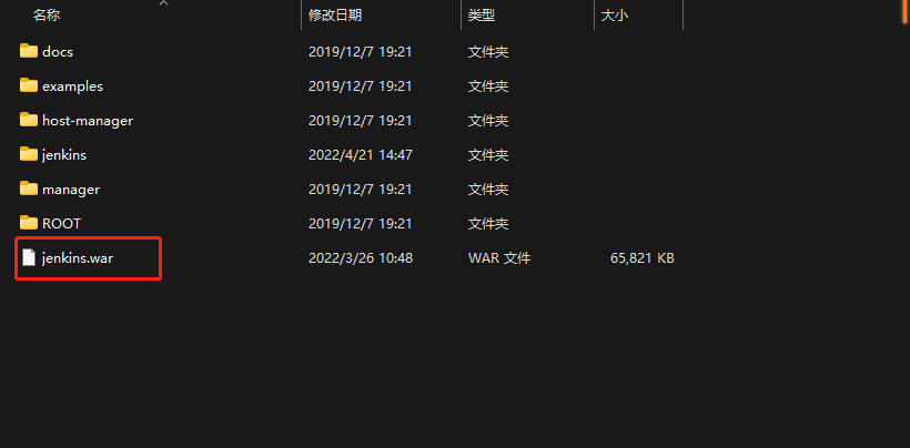 1: The following jenkins.war bag tomcat Corresponding webapps Next
