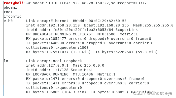 #开启复用 echo threathuntercoming | socat - tcp:192.168.28.128:80 #ssh使用80端口进行登录 ssh -p 80 [email protected] #关闭复用 echo threathunterleaving | socat - tcp:192.168.28.128:80