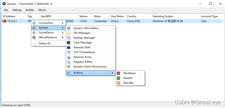 netstat -ano命令查看目前的网络连接,定位可疑的 ESTABLISHEDb、根据 netstat 命令定位出的 PID 编号,再通过 tasklist 命令进行进程定位