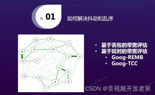 - WebRTC防止拥塞的根基是有准确的带宽评估方法。它提供了两种带宽评估方法,一种是基于丢包的带宽评估,另一种是基于延时的带宽评估。而基于延时的评估方法又分为接收端(Goog-REMB)和发送端(TCC,transportCC)的带宽评估方法,目前默认采用的是Goog-TCC方法,因为其相对来说更为精准。