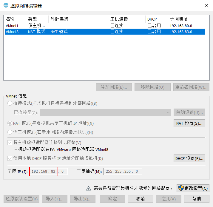 - View network information -> edit -> Virtual Network Editor -> Remember subnet IP The first three paragraphs of