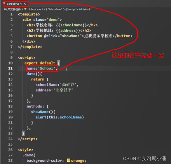 - CamelCase式命名:Myschool(需要Vue脚手架支持)