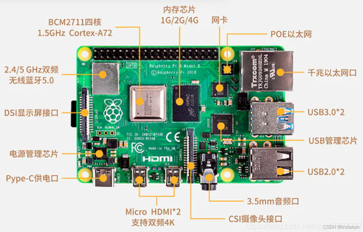 2.2 Raspberry pie 4B Motherboard Introduction