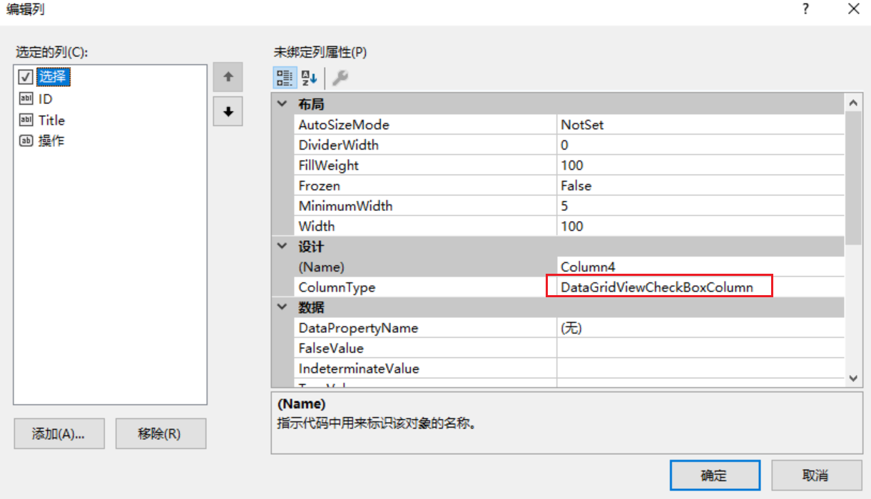 The first one is , Table attribute add , After the save , An operation column will appear , The display text of the button must be in DefaultCellStyle Set in , Then open the GridView Properties of , add to CellContentClick event , Give the button an event