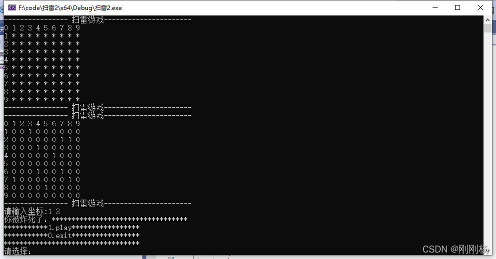 Next, we define a function , Responsible for traversing and assigning values to two arrays , The first function is all assigned to 0, At this time, it means that thunder has not been arranged , The second function is all traversed *, Let users be responsible for * Look inside for ray