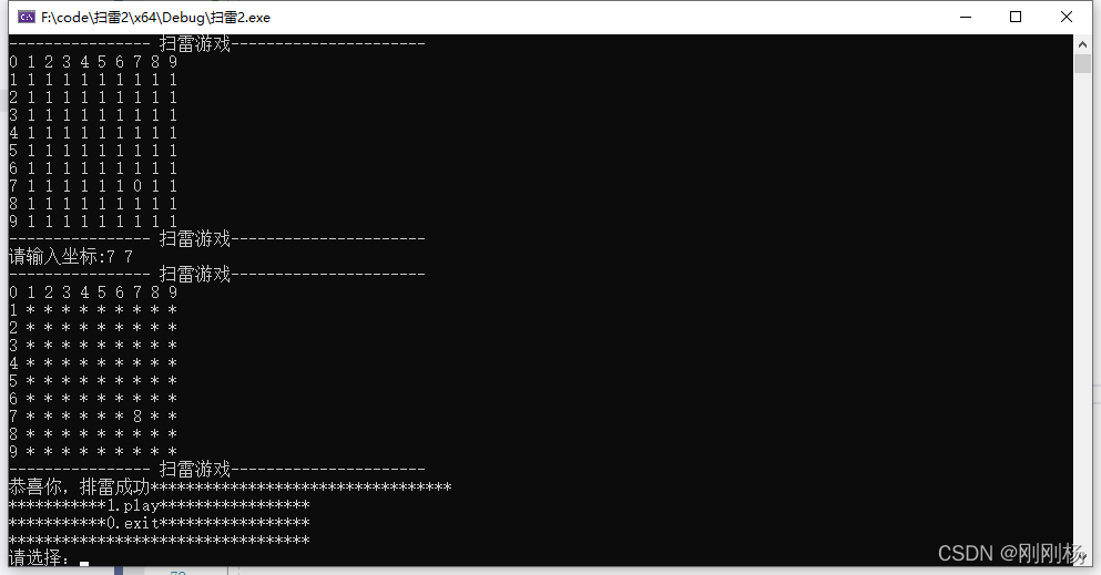 break; // If the user chooses 1, Print out the words of mine sweeping game , And enter game() Game functions , When the game is over ,break Jump out of while(1) loop