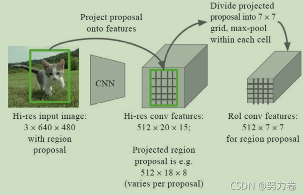 - Combine the whole picture with ROI Direct input to full convolution CNN in , Get the feature layer and the corresponding on the feature layer ROI( Feature layer ROI The information can be derived from its geometric position plus convolution coordinate formula ).