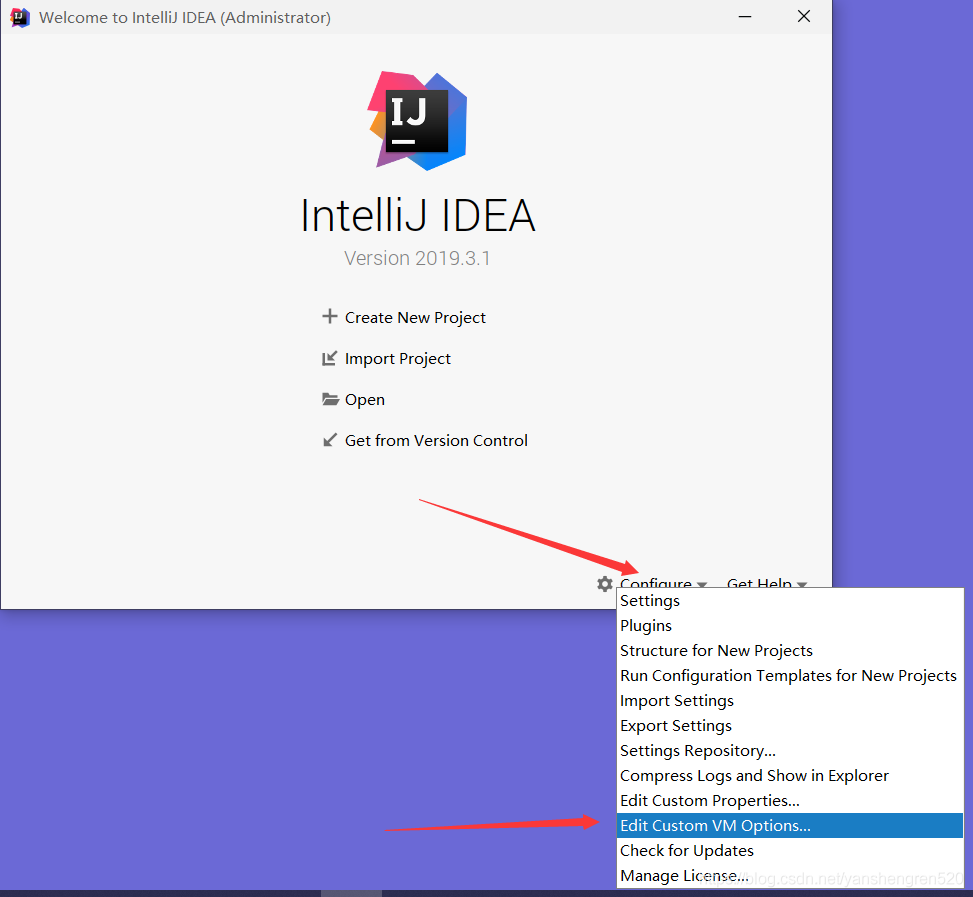 Click on what you want to register IDEA menu :"Configure" or "Help" -> "Edit Custom VM Options ..."