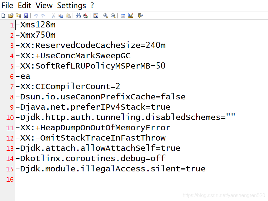 After successful installation , stay IDEA Installation directory , find bin In the catalog idea64.exe.vmoptions file . This is 64 Bit IDEA Configuration information ,