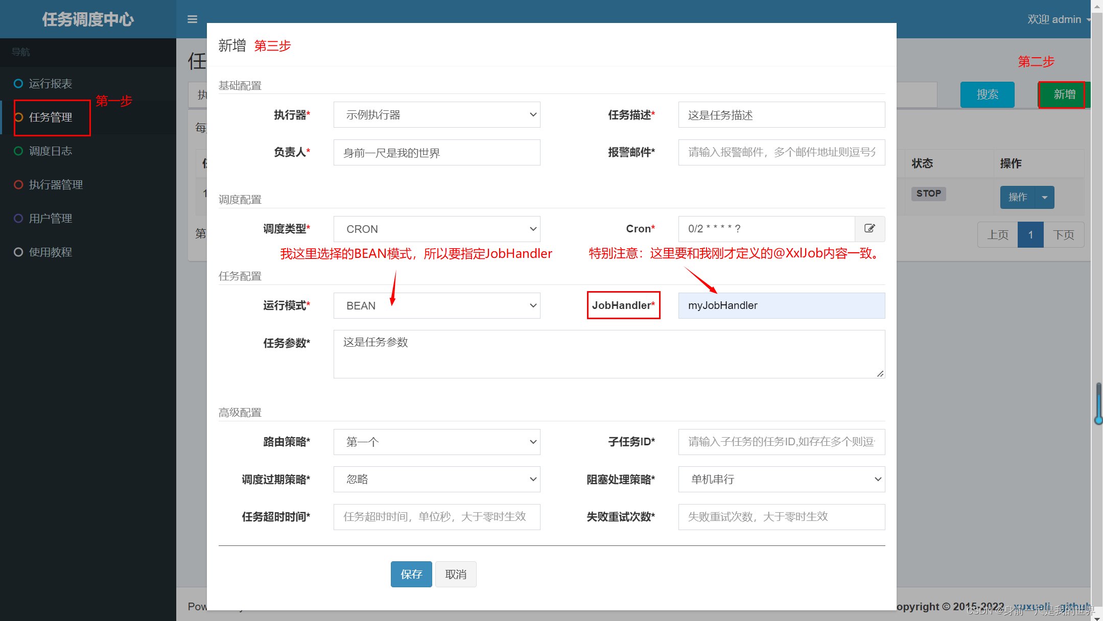 第二步:登录后台管理系统,将刚才的信息录入到执行器管理。