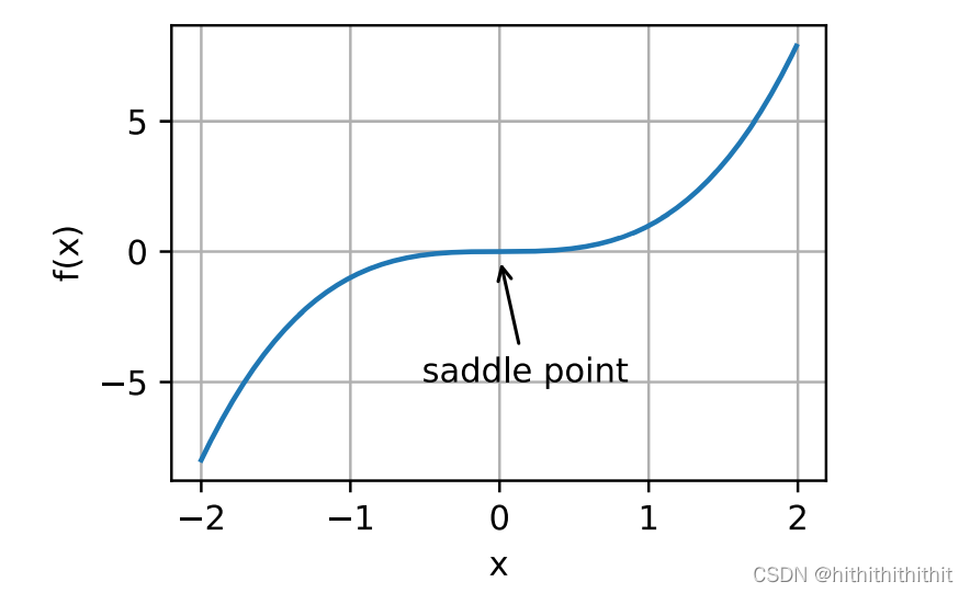 2、鞍点:鞍点指的是函数一阶导和二阶导均为0的点,此时虽然函数梯度消失,但既不是全局最小值也不是局部最小值。而到了这里优化可能会停止,这将导致优化过程失败。为了更加明白鞍点这个概念的由来,下面右图给出了一个三维空间的函数图像,其中红色的点就是鞍点,整个图像像极了马鞍。