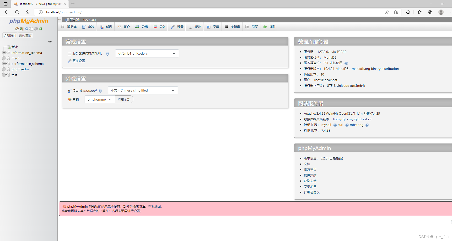 出现以下界面说明phpmyadmin数据库管理端安装成功了