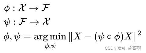 编码器函数用ϕ表示,该函数将原始数据X映射到潜在空间F中(潜在空间F位于瓶颈处)。解码器函数用ψ表示,该函数将瓶颈处的潜在空间F映射到输出函数。此处的输出函数与输入函数相同。因此,我们基本上是在一些概括的非线性压缩之后重建原始图像。